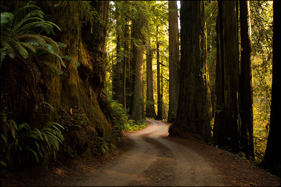 Howland Hill Road thru Jedediah Smith Redwoods State Park. It's a five minute drive to the park from the lodge.